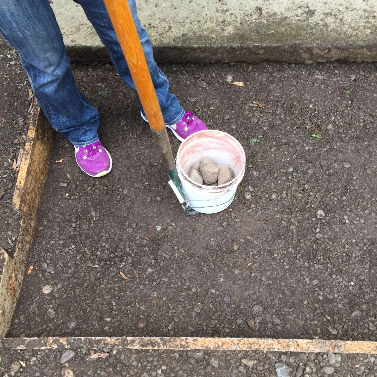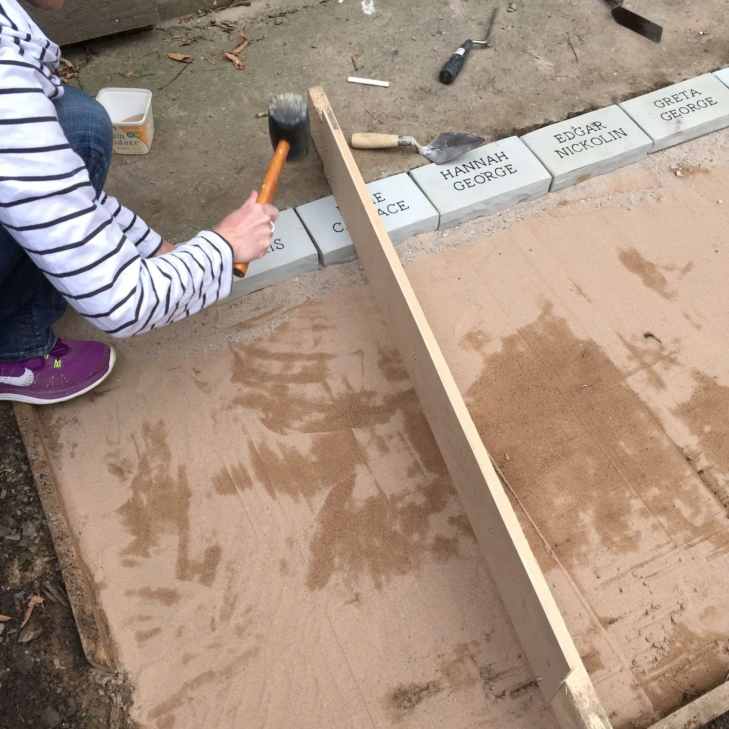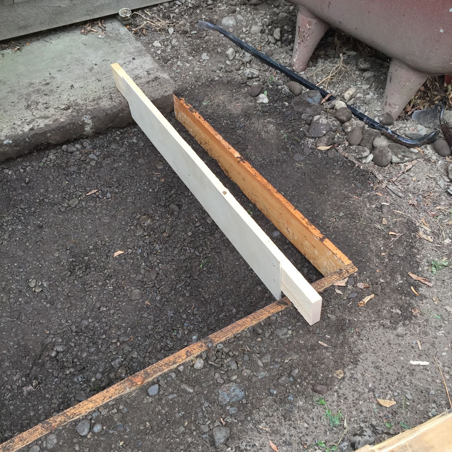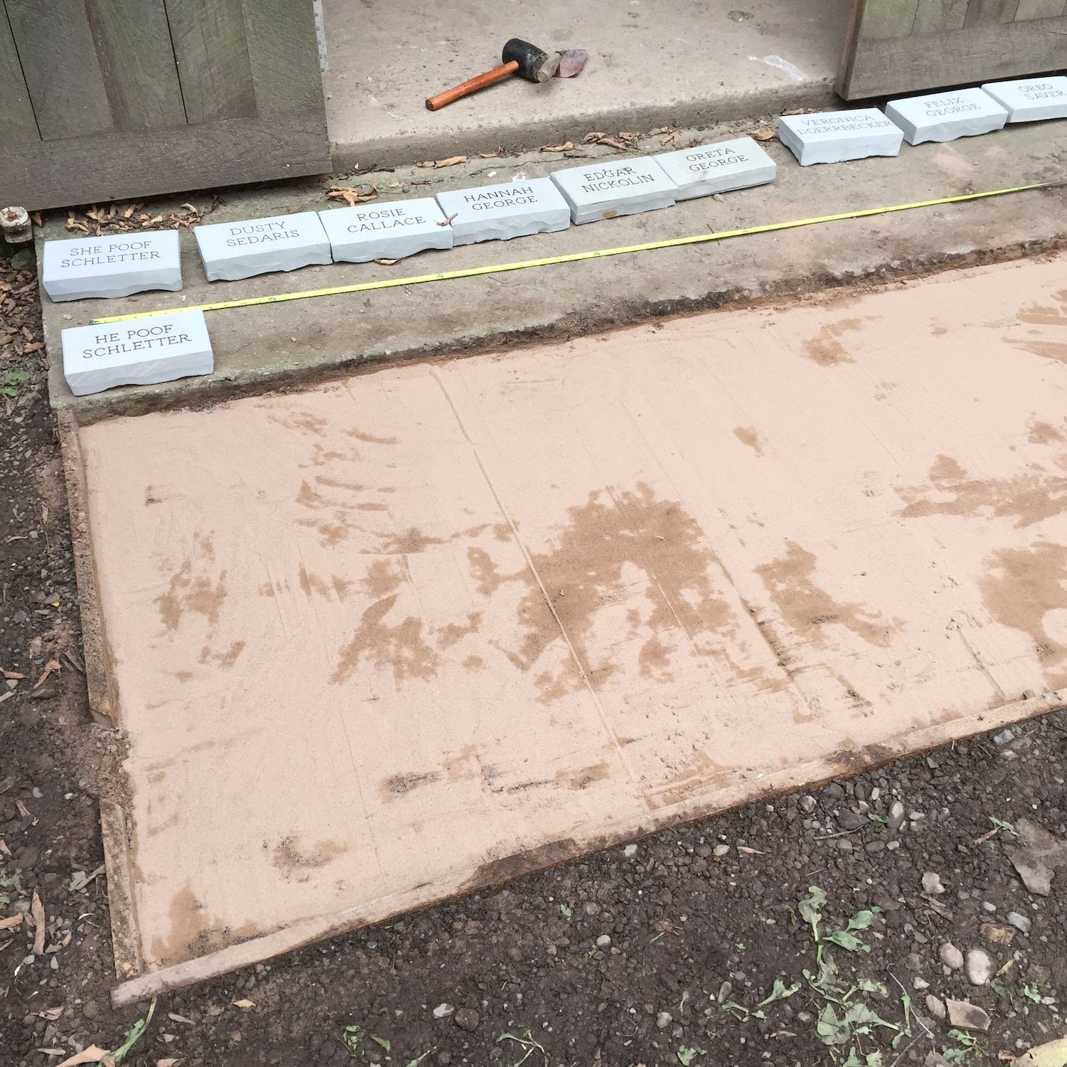 We had no idea how many steps were involved in making a paver stone pathway! Here’s the scribe that we made to make sure everything was level.