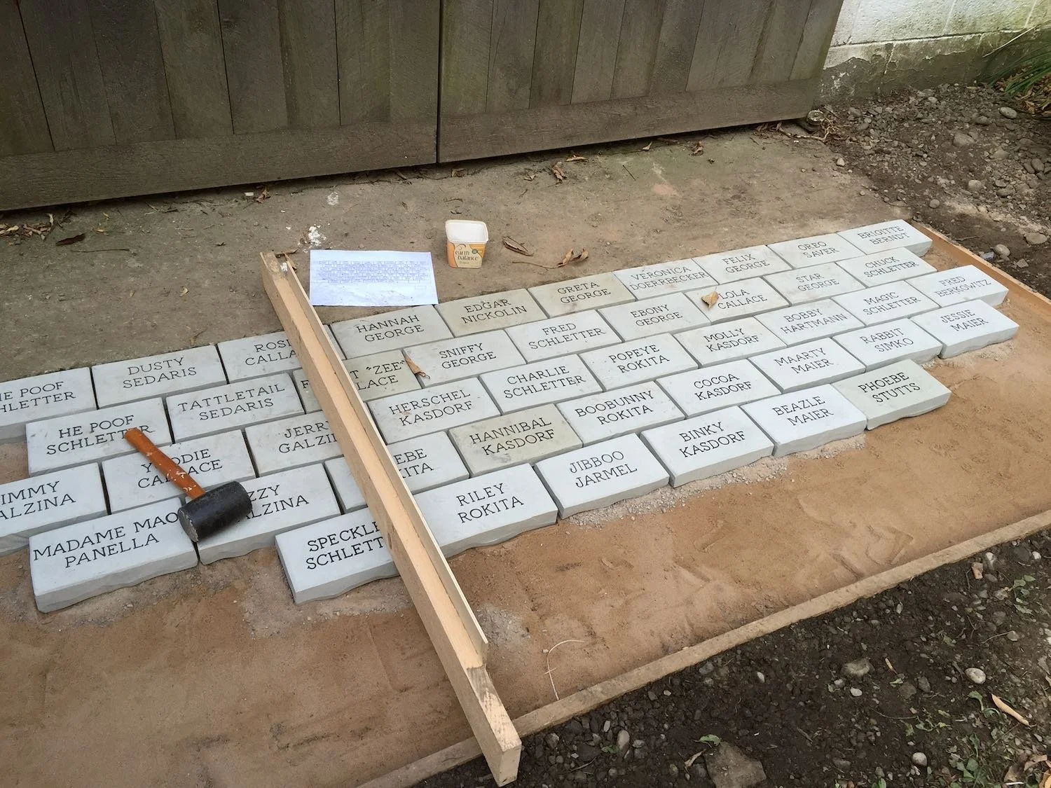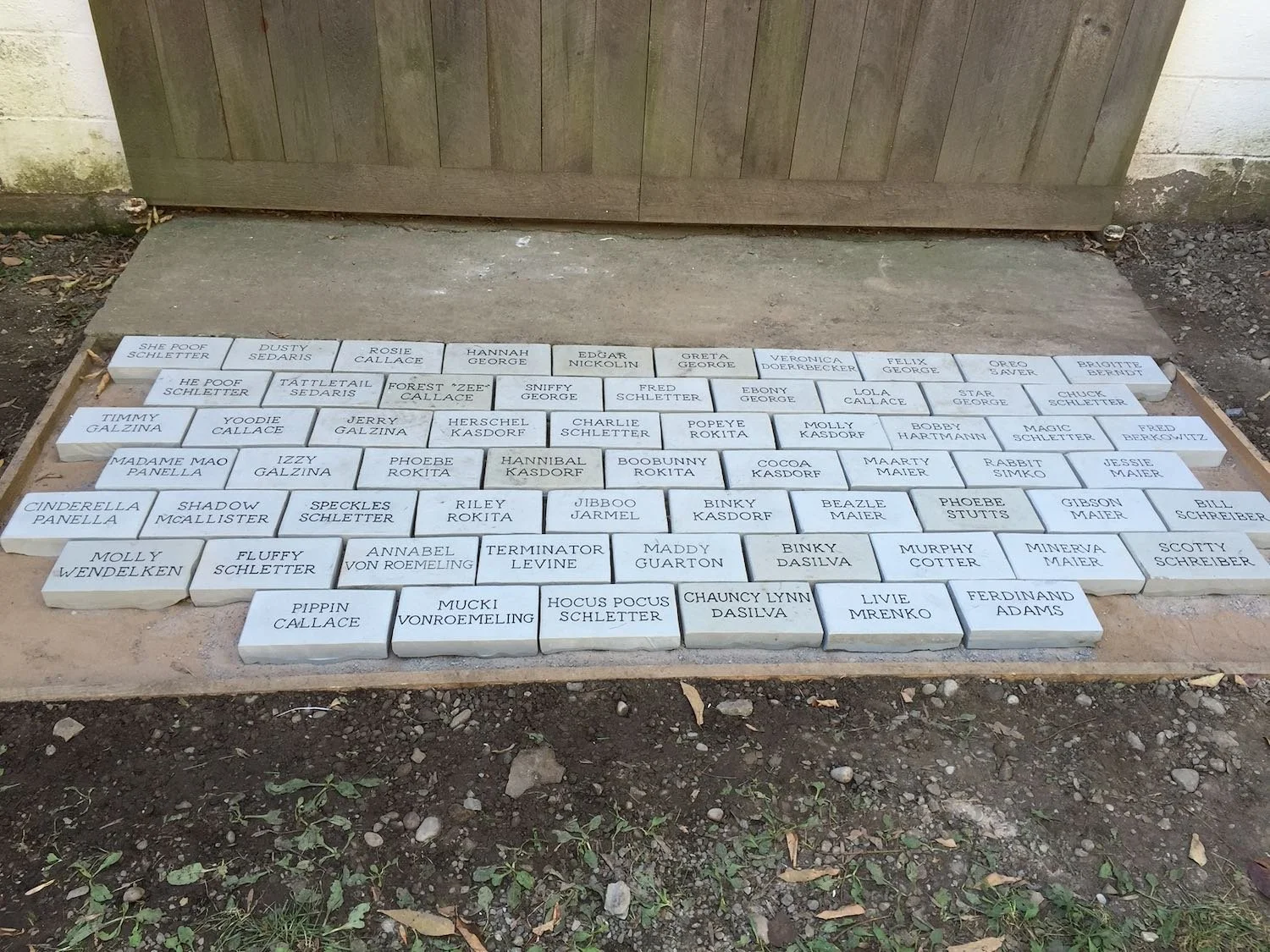 The memorial walkway came out so beautifully. Susan did a wonderful job and we love seeing all the names of so many beloved pets every day. Since we ran out of room, we started a new memorial walkway in our cemetery which has an infinite amount of space for adding new stones.